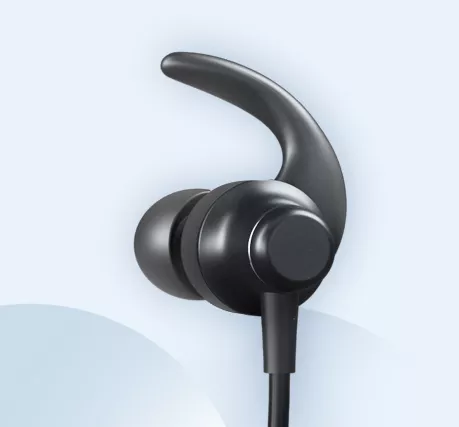 Специальная форма наушников в виде крючков обеспечивает надёжное крепление во время интенсивных тренировок.