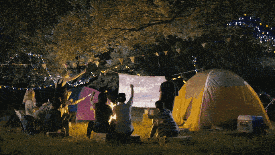 Смотрите фильмы с друзьями на большом экране, во время похода с палатками.